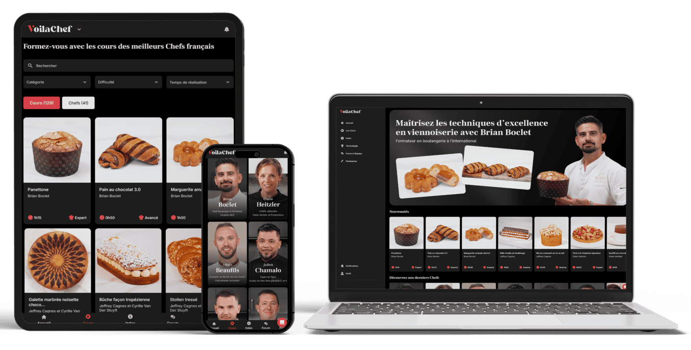 Voilachef offers complete and high quality courses ! The interface is very well designed and the courses are very well explained by the chefs.